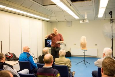 Jesper fortalte lidt om de workshops han afholder, og så gav han en kort introduktion til studie- og modelfotos med flash.