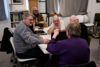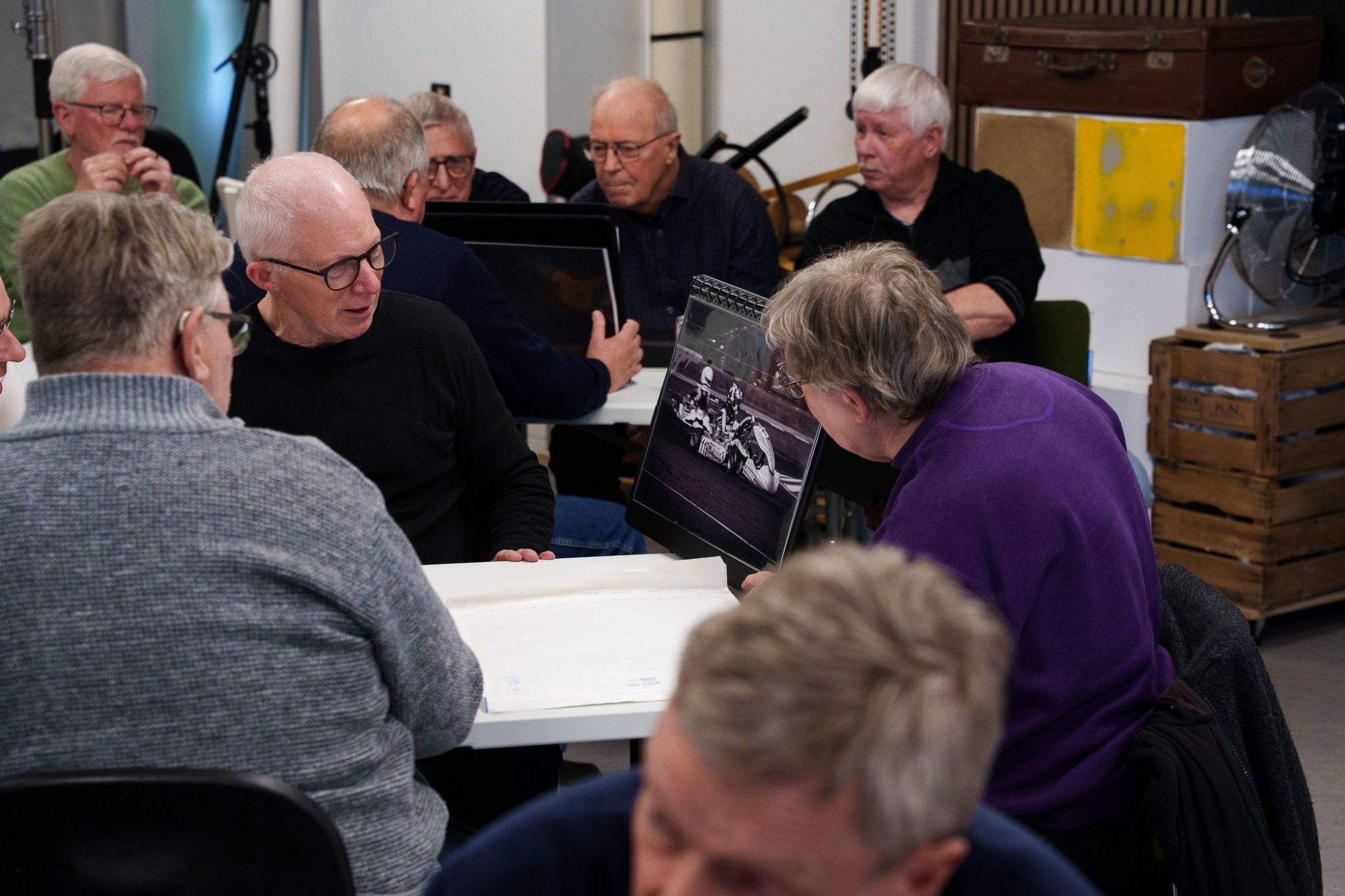 Som vanligt, blev de fremmødte delt op i grupper, og så gik snakken lystigt omkring de billeder der var sat i mapperne.