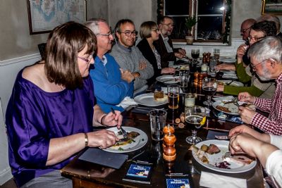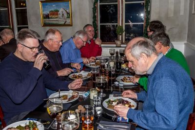 Sammenkomsten forløb med god mad og hyggelig snak og efter kl. 21 begyndte medlemmerne stille og roligt at sive, hvert til sit. Nogle standhaftige holdt dog ud, til restauranten lukkede og så er det jo ikke nogen skam at gå.